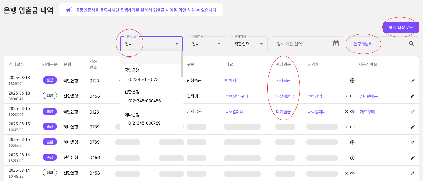 ✅ 모든 사업용 통장 입출금 내역 한 눈에 확인